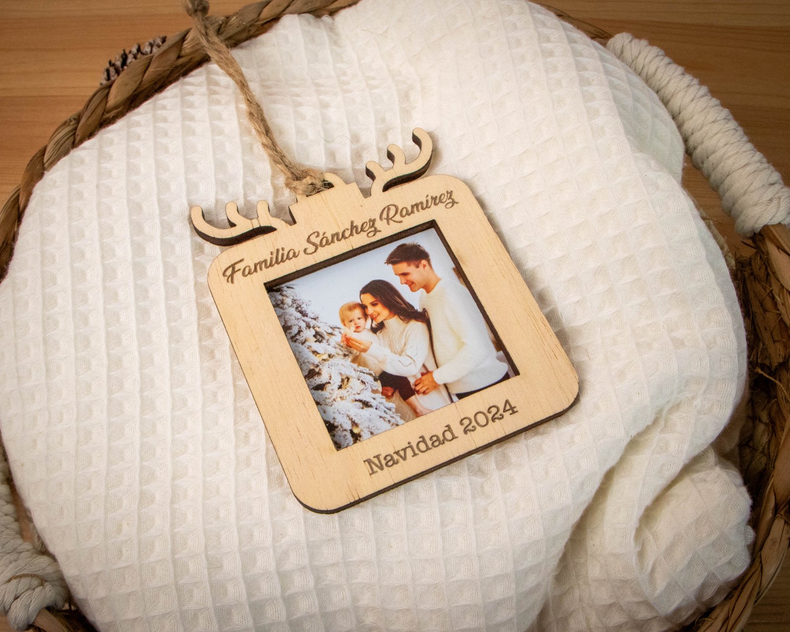 Haz que tu árbol de Navidad sea aún más especial este año con nuestra bola de Navidad modelo Reno Fotografía, personalizada con el nombre o Familia + Apellidos que quieras. Fabricada en madera, con grabado y fotografía, es el detalle perfecto para estas fiestas.