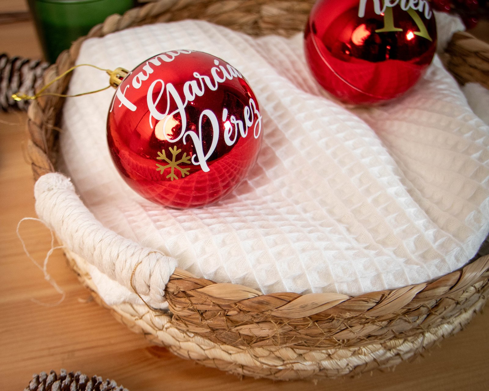 Perfectas para agregar un toque personalizado y cálido a tu árbol de Navidad, estas bolas son ideales para regalar a tus seres queridos o para decorar tu hogar con un estilo tradicional y sofisticado.