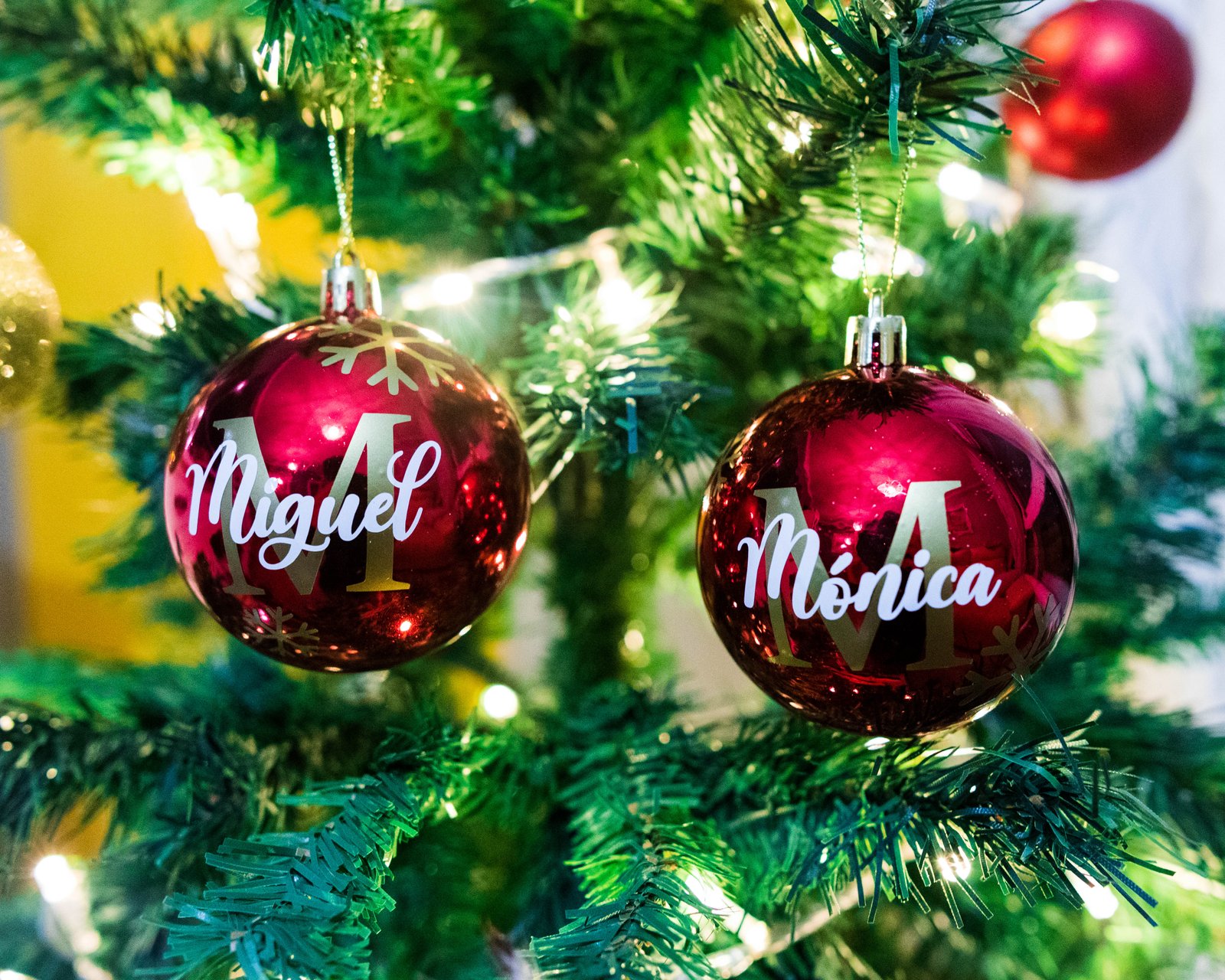 Haz que tu árbol de Navidad sea aún más especial este año con nuestras bolas de Navidad modelo Tradicionales en rojo brillante, personalizada con inicial y nombre en vinilo. Un toque clásico y elegante para tu decoración navideña.