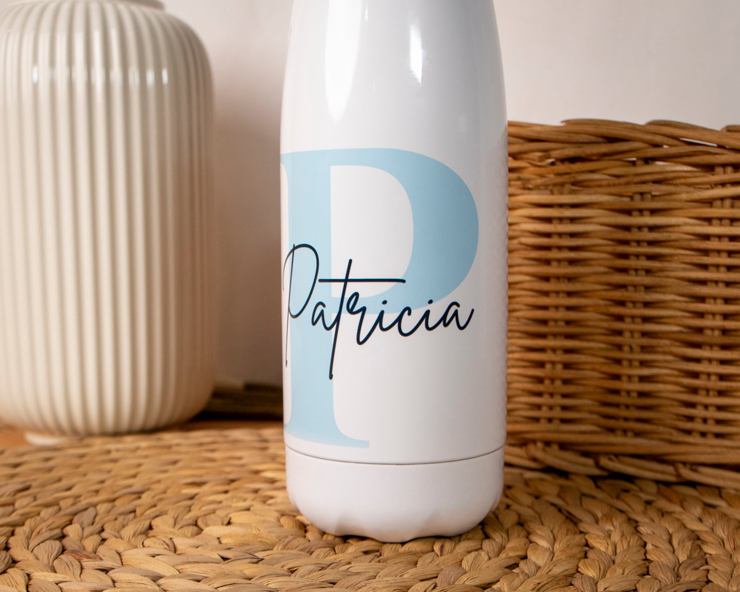 Es muy importante mantenernos hidratados. Por eso, nuestra botella térmica personalizada con diseño «Inicial» es algo que no te puede faltar. Es ideal para llevarla siempre contigo allá donde vayas.