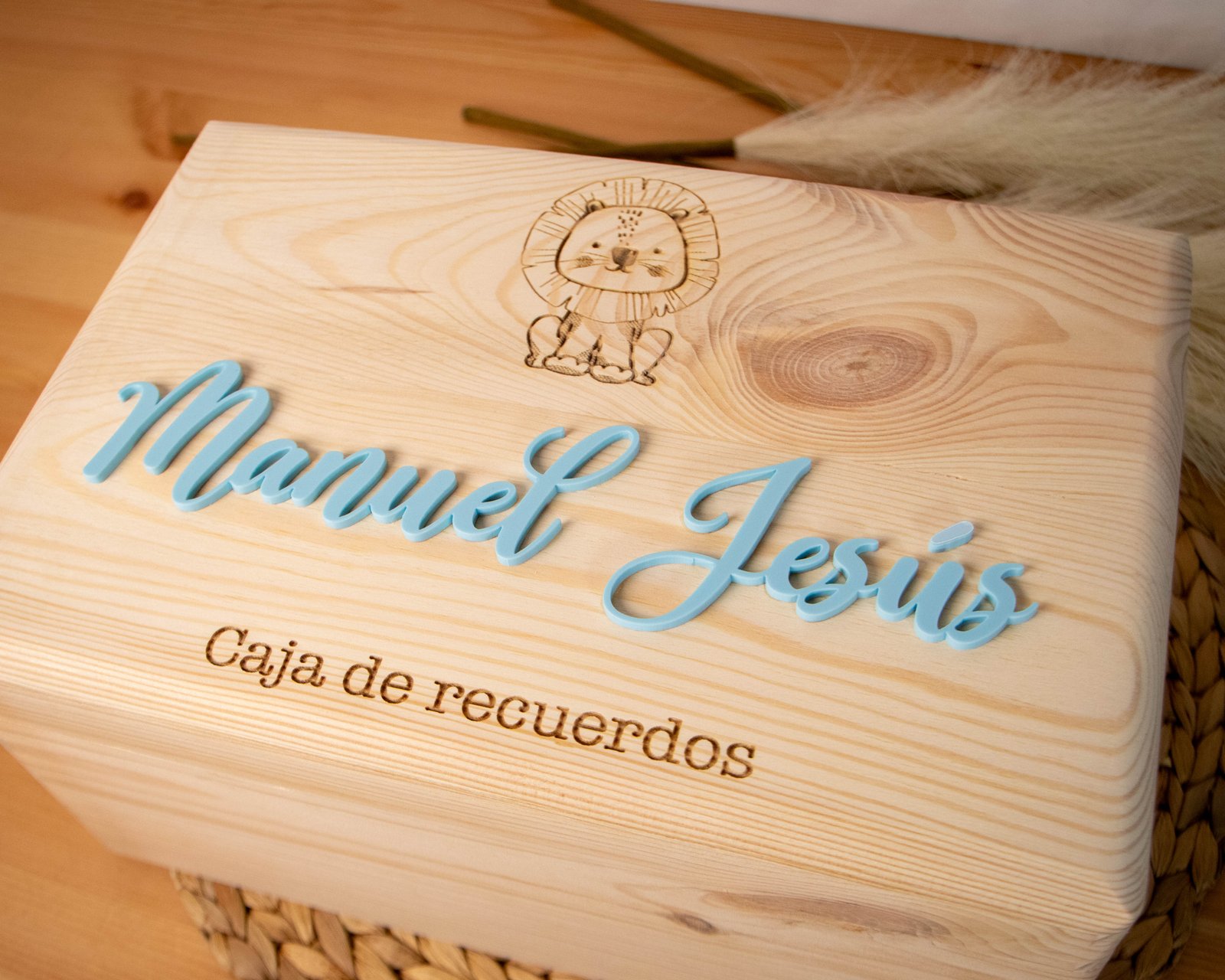 Puedes personalizar la caja con el nombre del bebé en uno de los nueve colores que ofrecemos, para que refleje su estilo y personalidad desde el primer día. Además, puedes grabar en la tapa un mensaje especial, como "Cápsula del tiempo", "Caja de recuerdos", la fecha de nacimiento, o cualquier otro detalle que haga de esta pieza algo verdaderamente memorable.
