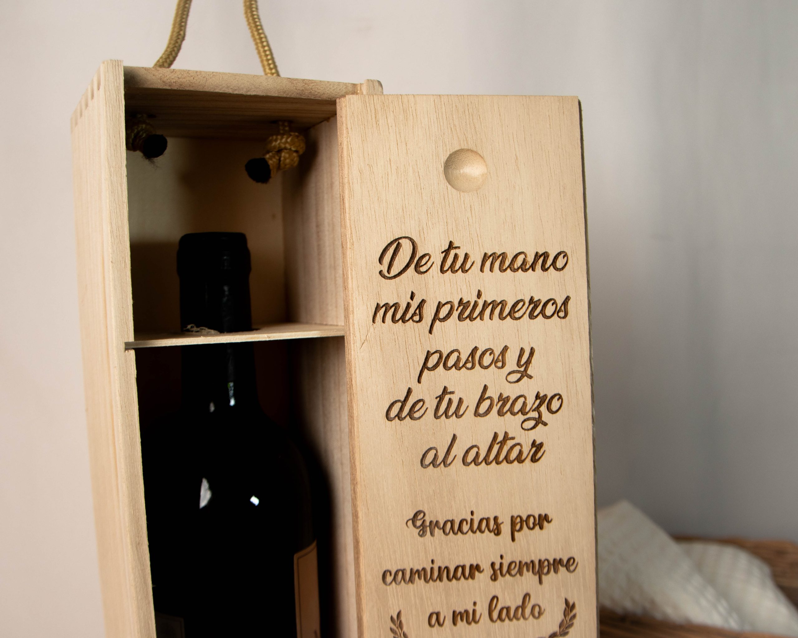 Expresa tu amor y gratitud con nuestra emotiva Caja de Vino de Madera Personalizada Clásica, el regalo perfecto para agradecer o felicitar a tus seres queridos en cualquier ocasión especial. Esta caja va más allá de un simple envoltorio; es un recuerdo cargado de sentimiento que conservarán por siempre.