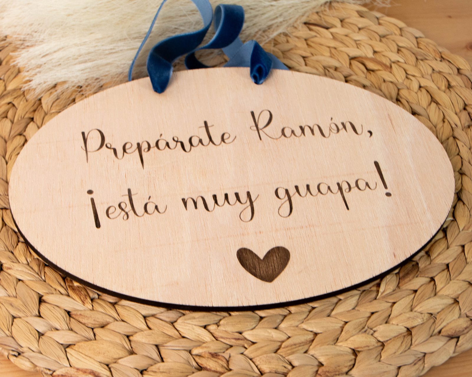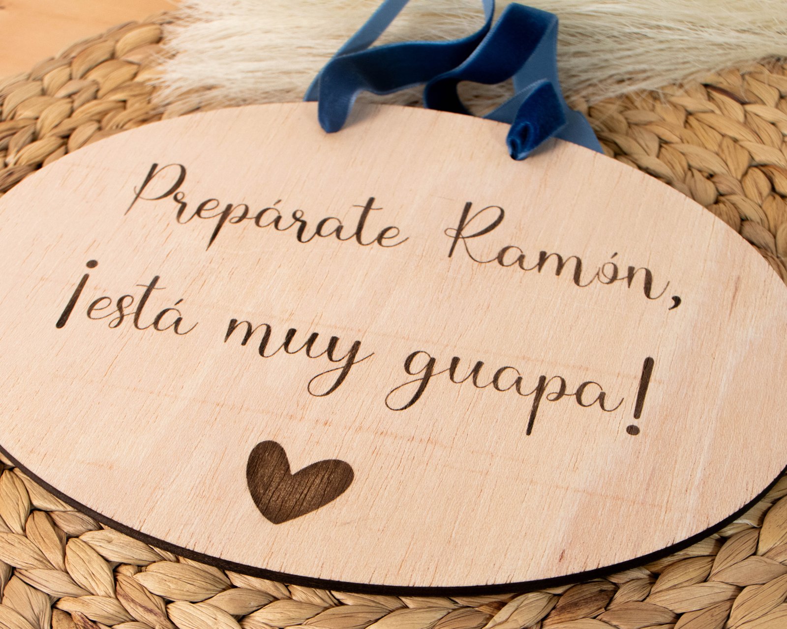 Cartel ovalado de madera personalizado para la entrada de la novia.