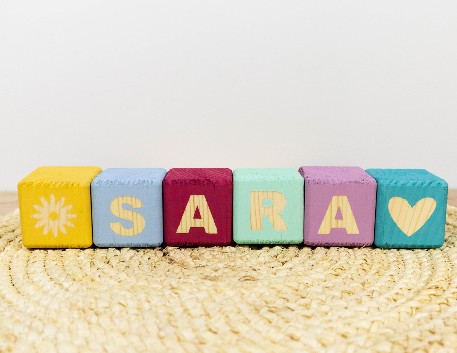 Cubos de madera 100% hechos a mano. Cortados, lijados y pintados a mano uno a uno en el taller de PAMAKI Creaciones