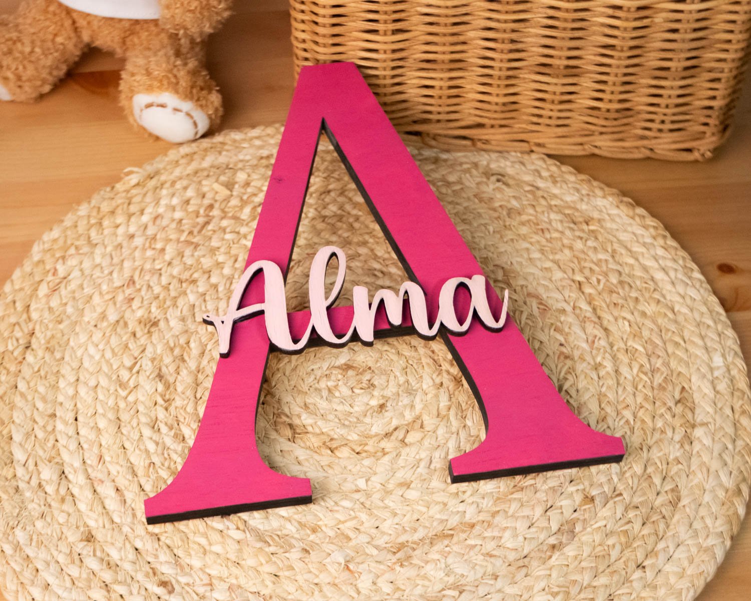 ¡La deco más bonita, tierna y divertida para la habitación de tu peque está en PAMAKI Creaciones! Y nuestra Inicial de madera le dará ese toque mágico tan especial a su cuarto. Está hecha en madera en nuestro taller y pintada a mano pieza a pieza. Personalízalo con el nombre de tu peque y listo para colgar en su habitación ¡os encantará!