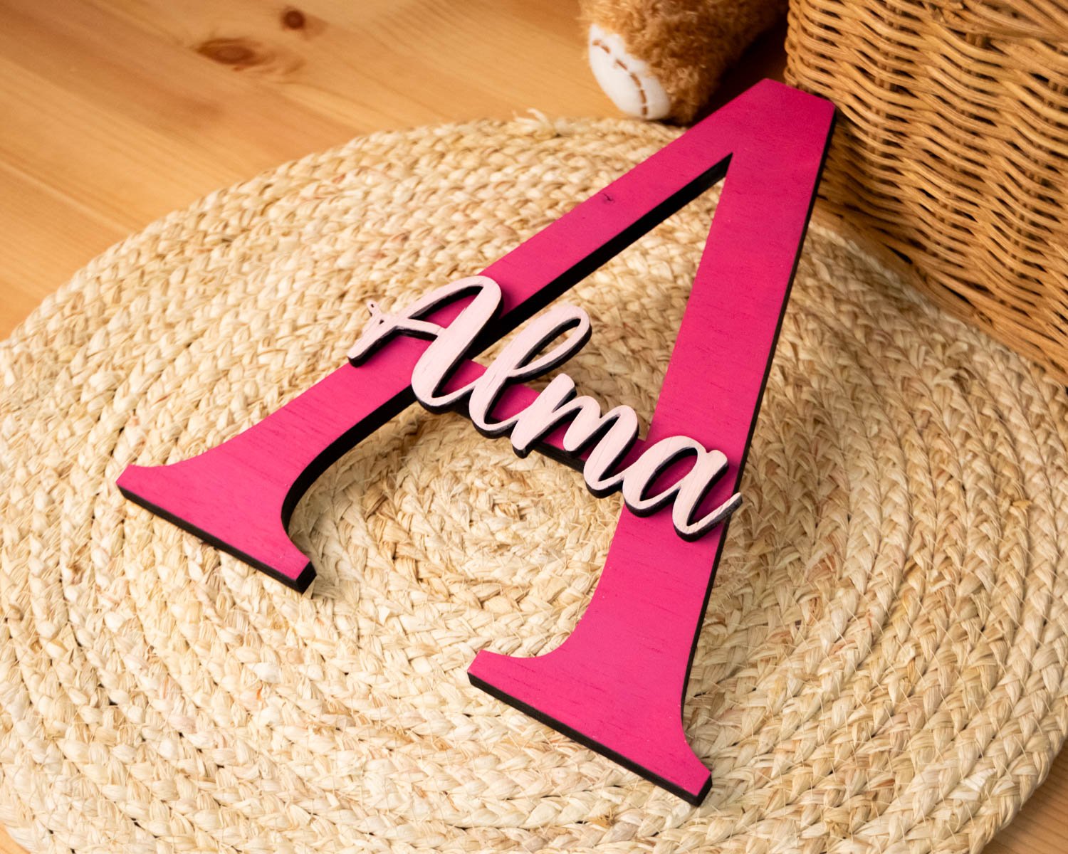 ¡La deco más bonita, tierna y divertida para la habitación de tu peque está en PAMAKI Creaciones! Y nuestra Inicial de madera con nombre le dará ese toque mágico tan especial a su cuarto. Está hecho en madera contrachapada en nuestro taller y pintado a mano pieza a pieza. Personalízalo con el nombre de tu peque y listo para colgar en su habitación ¡os encantará!