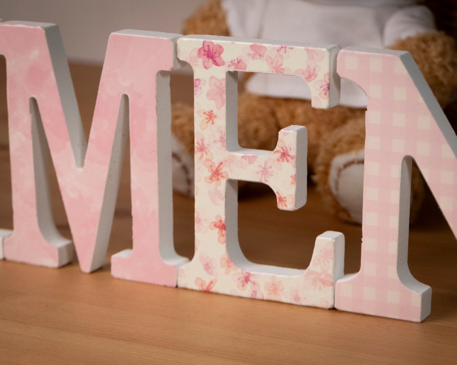 ¡La deco más bonita, tierna y divertida para la habitación de tu peque está en PAMAKI Creaciones! Y nuestras letras estampadas de madera le dará ese toque mágico tan especial a su cuarto. Están hechas en madera en nuestro taller y estampadas a mano pieza a pieza. Personalízalo con el nombre de tu peque y listo para colgar en su habitación ¡os encantará!