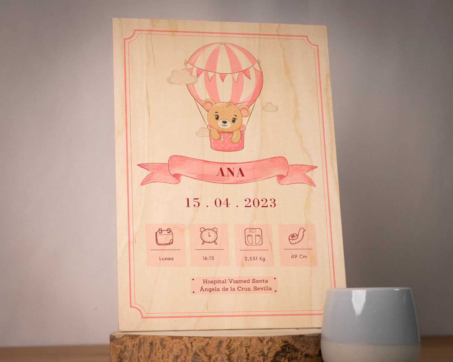 ¿Te gustaría tener un bonito recuerdo del día en el que nació tu bebé? En este precioso natalicio de madera estampada podrás poner todos los datos del nacimiento del peque de la casa, es un recuerdo ideal y perfecto para la decoración de su cuarto.