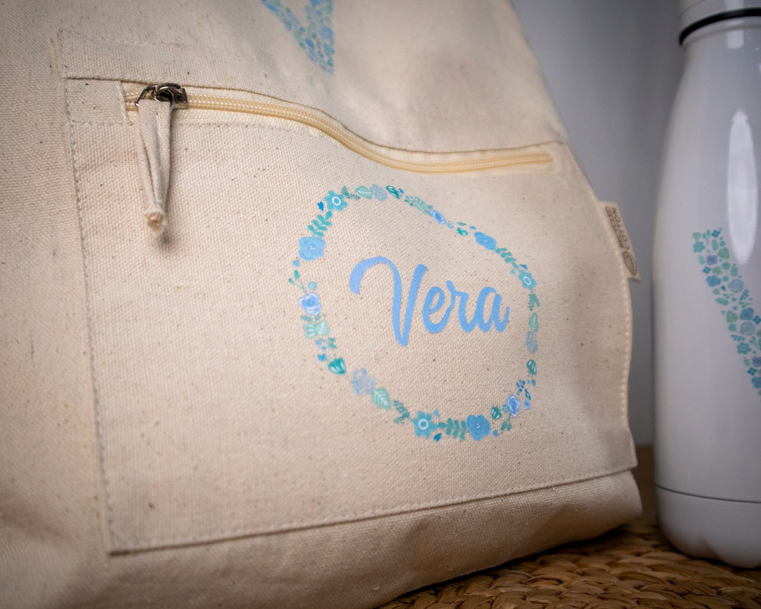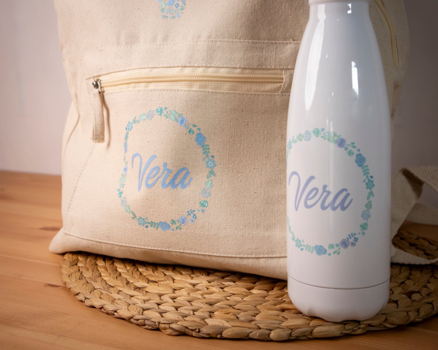 Mochilas con nombre e inicial con su botella a conjunto, un regalo perfecto.