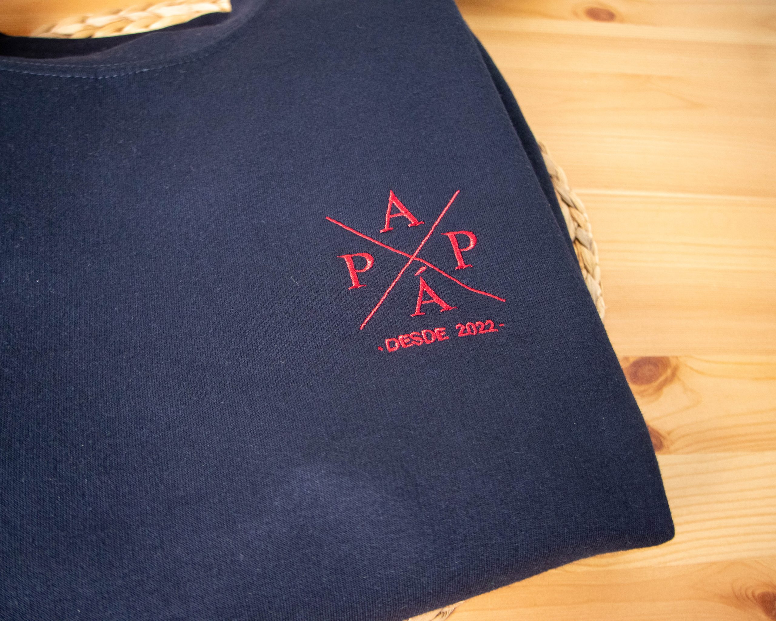 Sorprende a papá con una sudadera única y personalizada que refleje el orgullo y amor por su familia. Esta prenda especial destaca por su diseño exclusivo, con un elegante bordado en el pecho que presenta un aspa en la que se inscribe la palabra "Papá", acompañada de una fecha significativa o los nombres de sus hijos. Un detalle lleno de simbolismo que convierte esta sudadera en un regalo emotivo y lleno de significado.