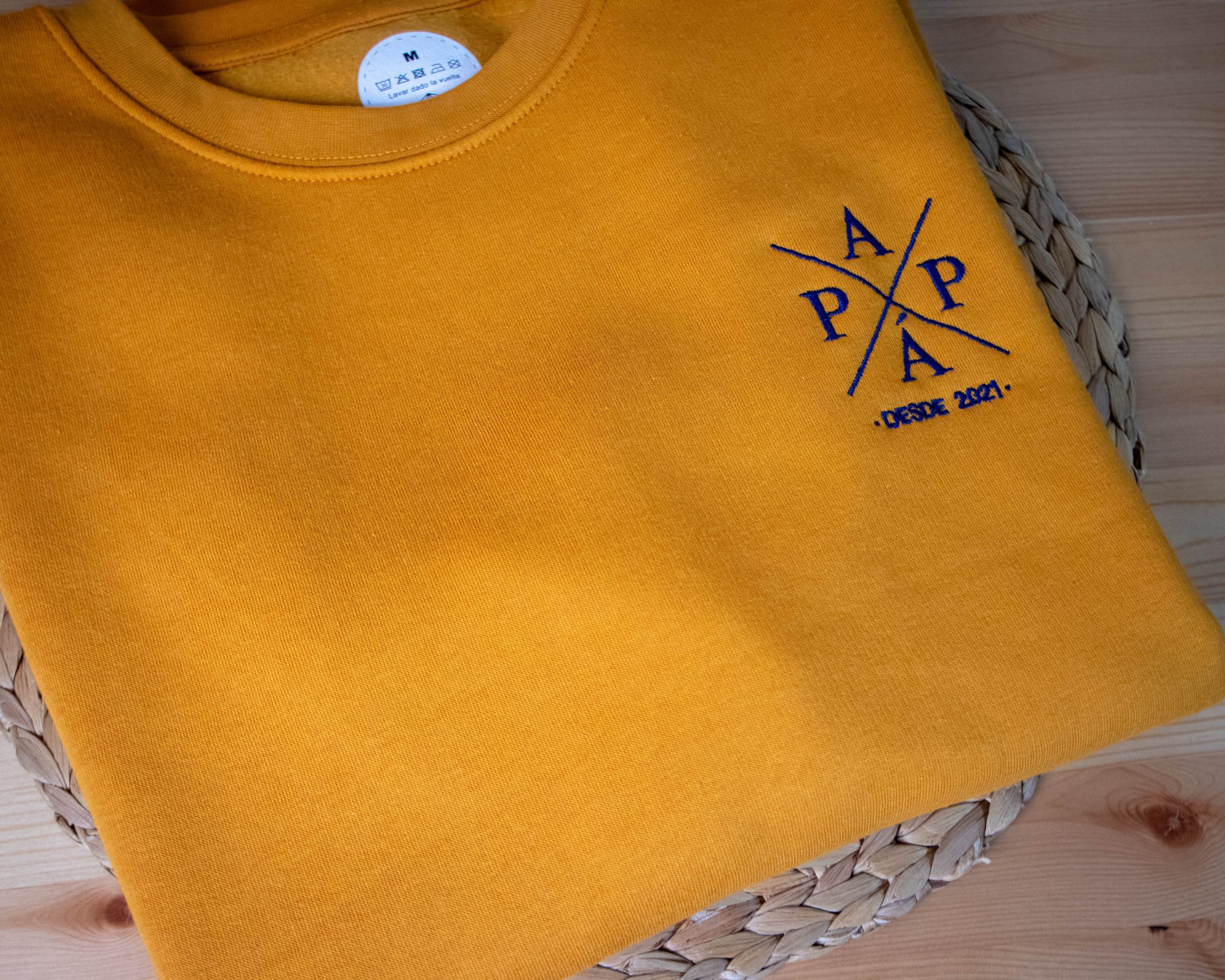 Sudadera personalizada con aspa PAPÁ + personalizaciones.