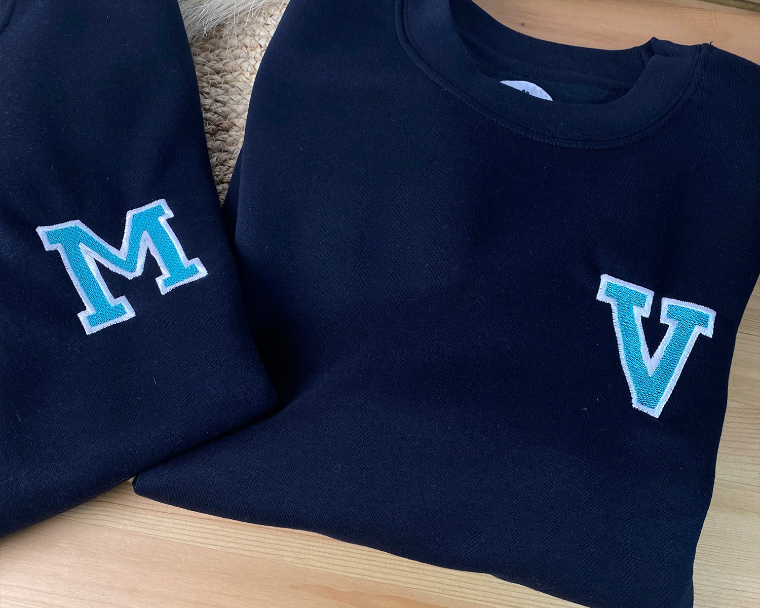 ¡Las sudaderas más molonas en PAMAKI Creaciones! Suuuuper bonitas, calentitas y personalizadas con la inicial estilo letra universitaria bordada.