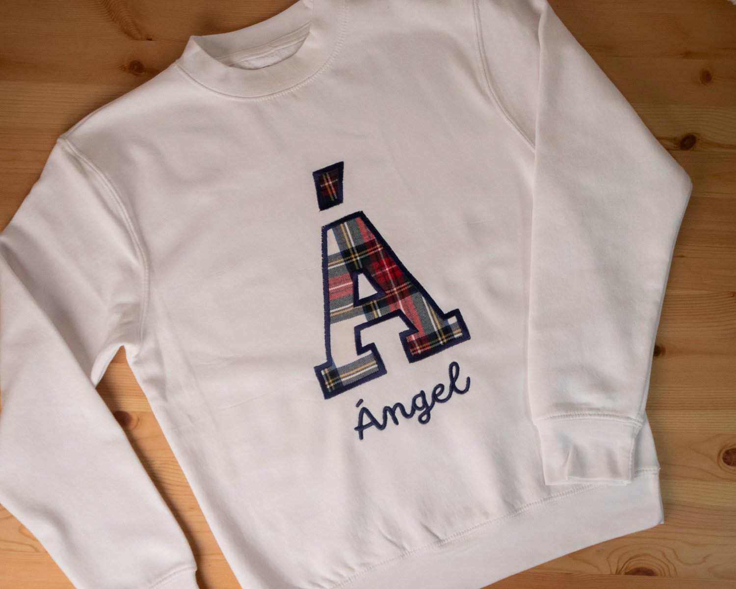 ¡Las sudaderas más molonas en PAMAKI Creaciones! Suuuuper bonitas, calentitas y personalizadas con la inicial en tela escocesa y el nombre de tu peque.