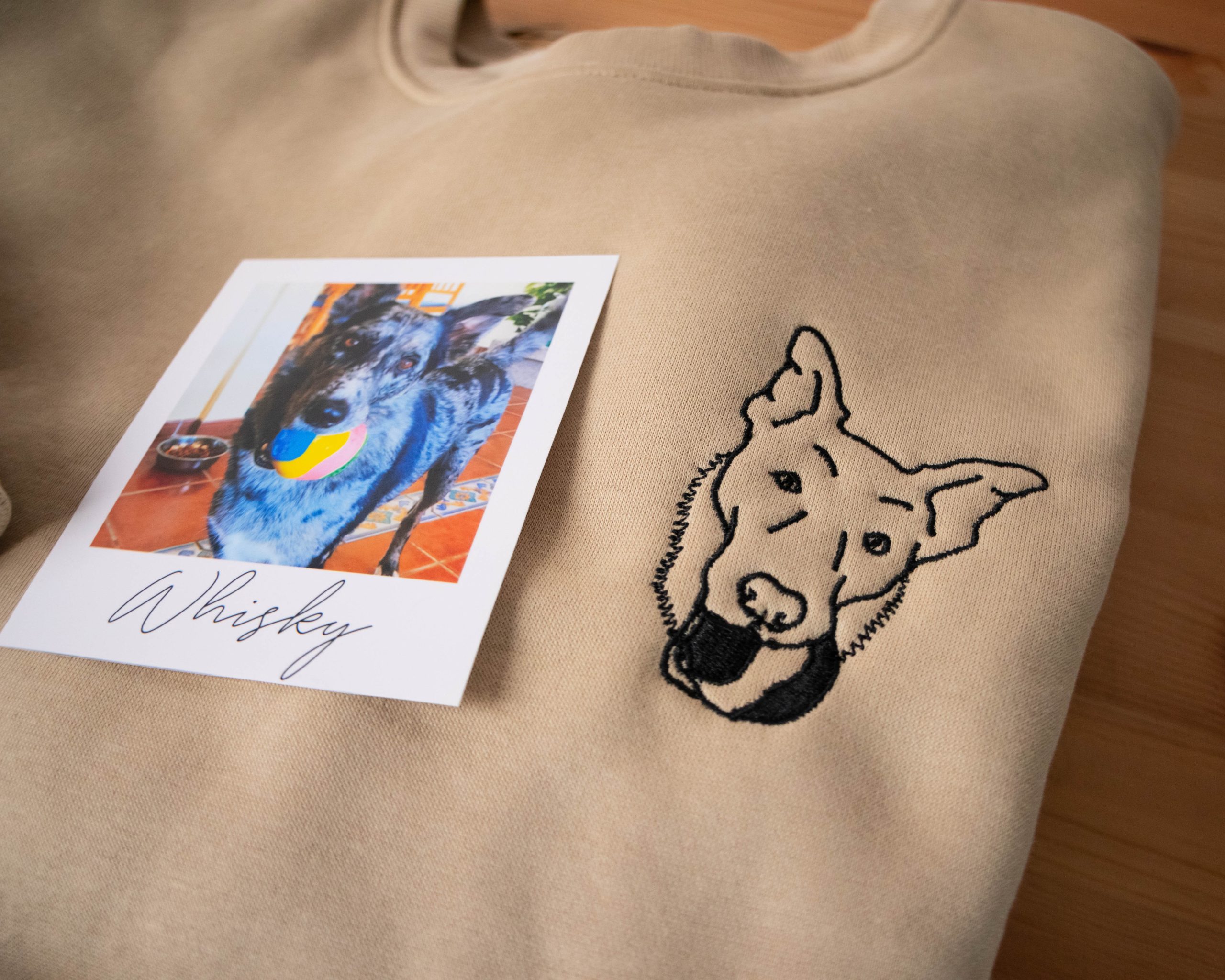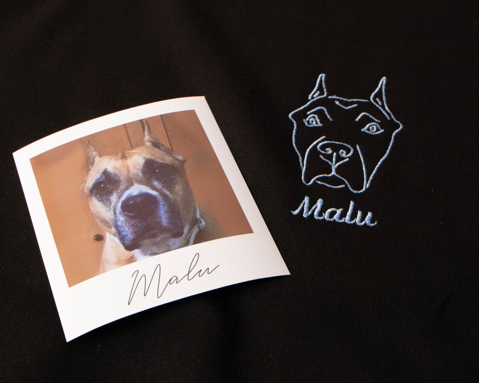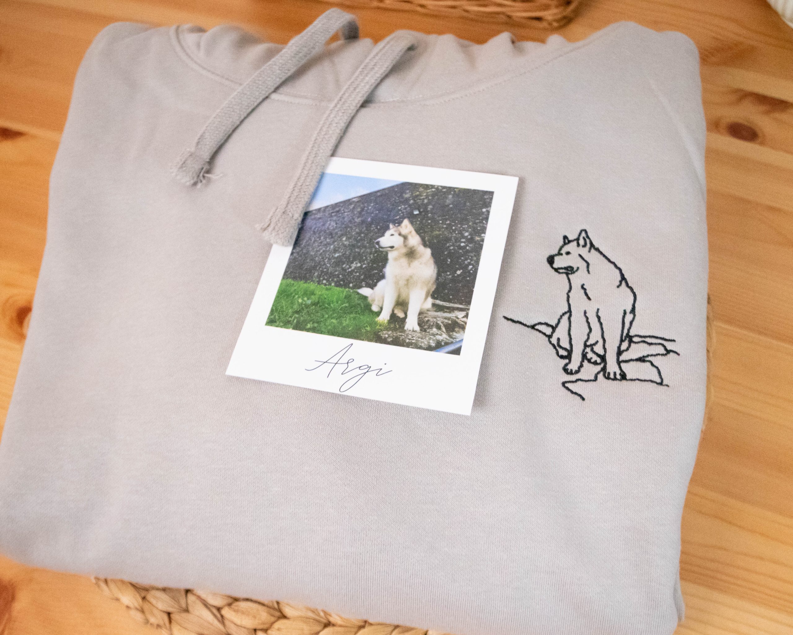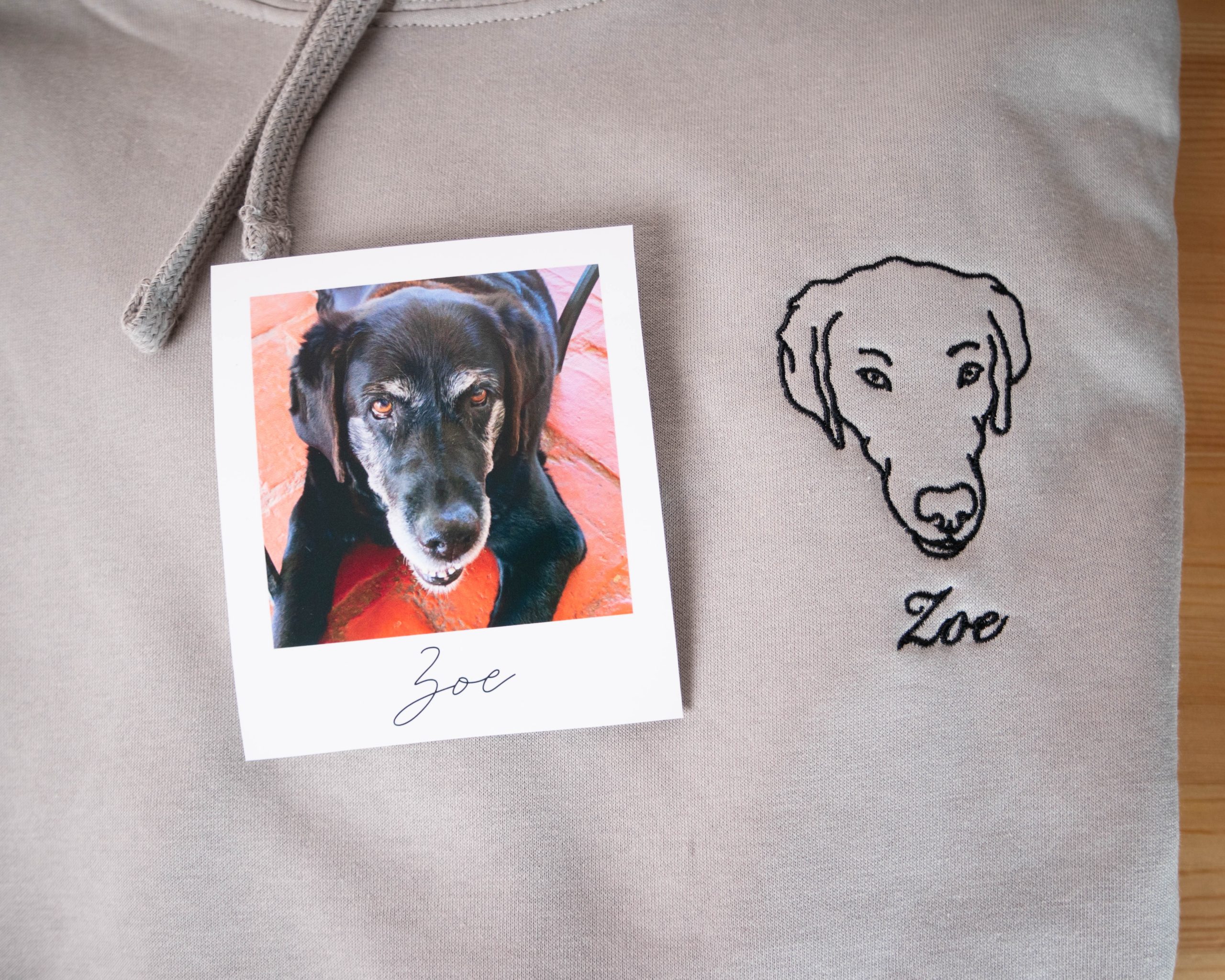 Sudadera personalizada con líneas de una foto y si eliges la opción también el nombre de tu mascota.