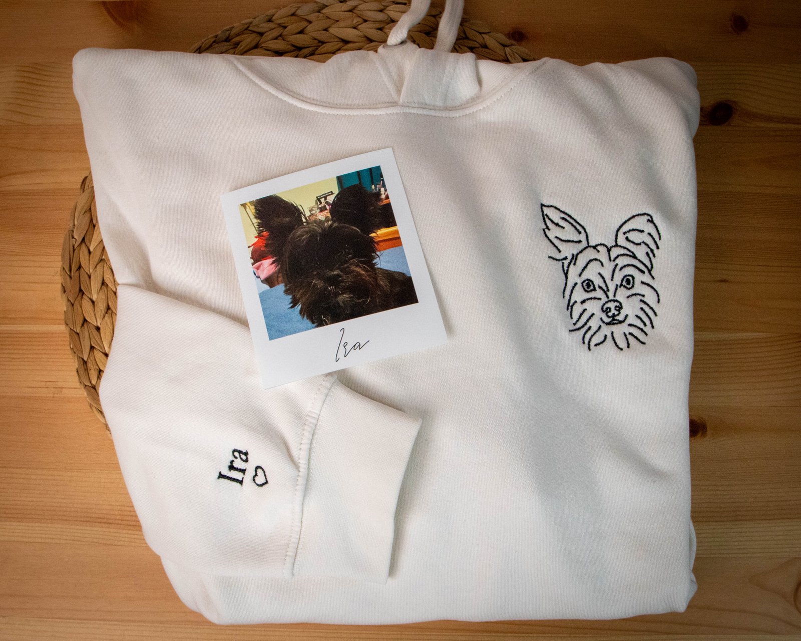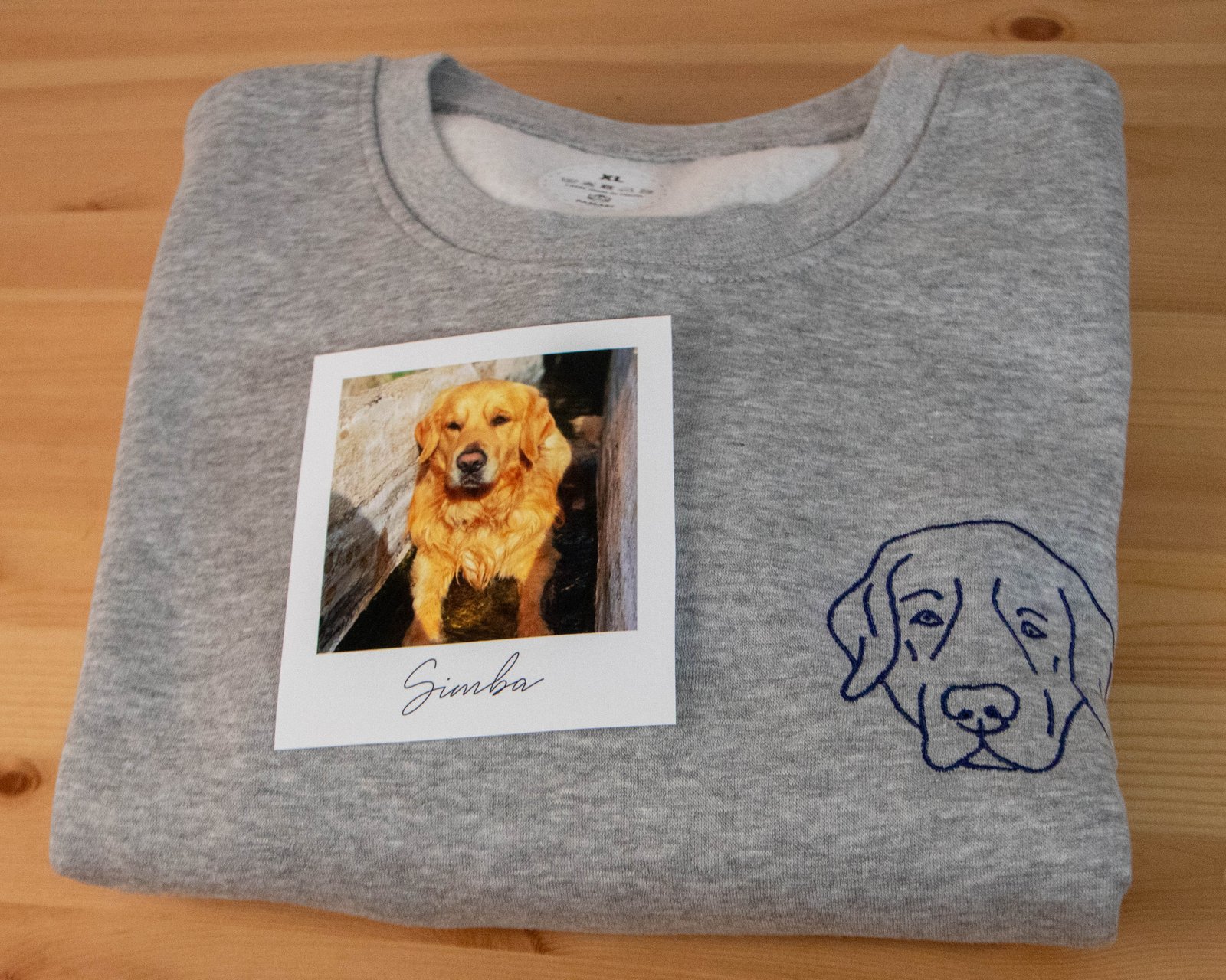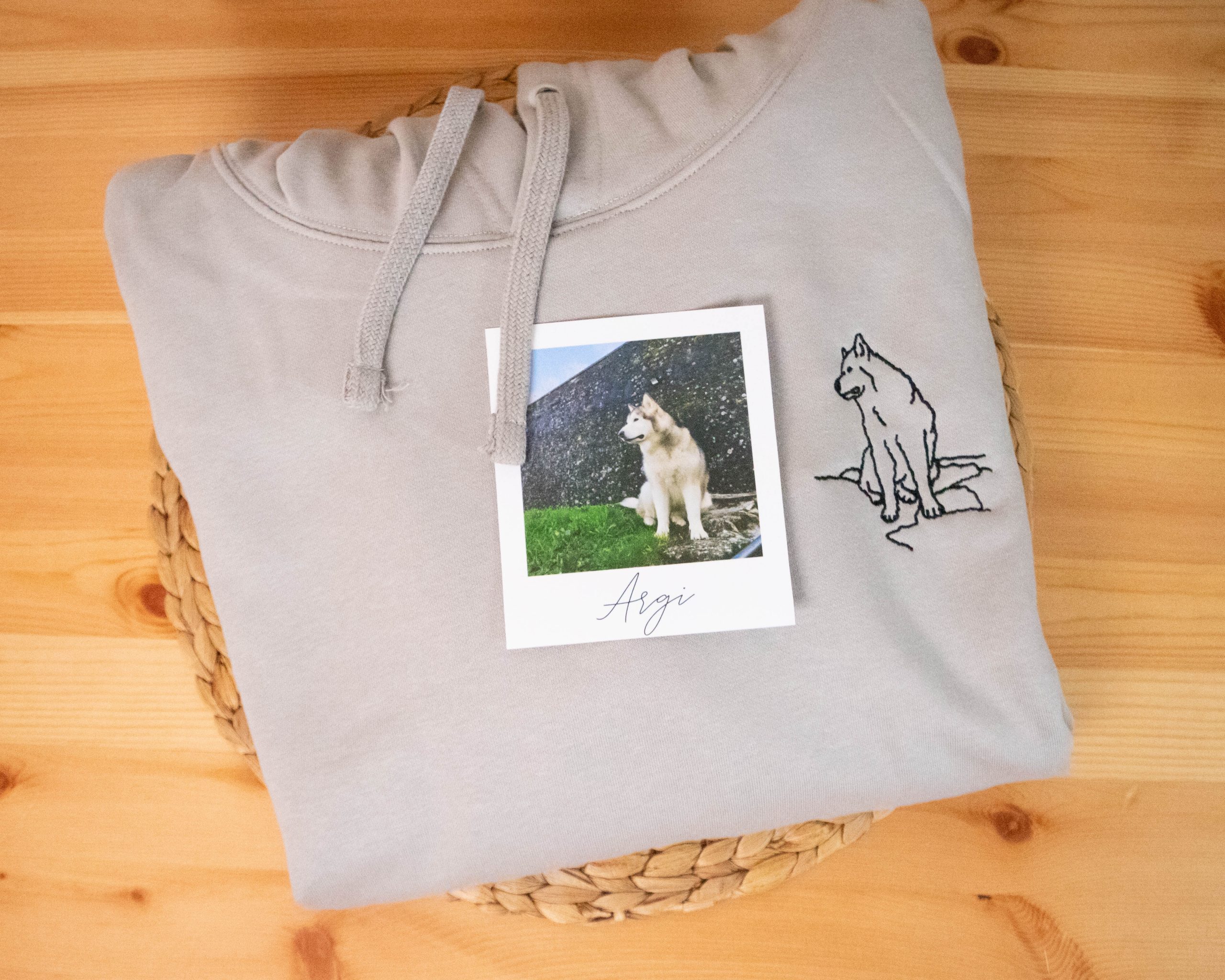 Sudadera personalizada con líneas de una foto y si eliges la opción también el nombre de tu mascota.