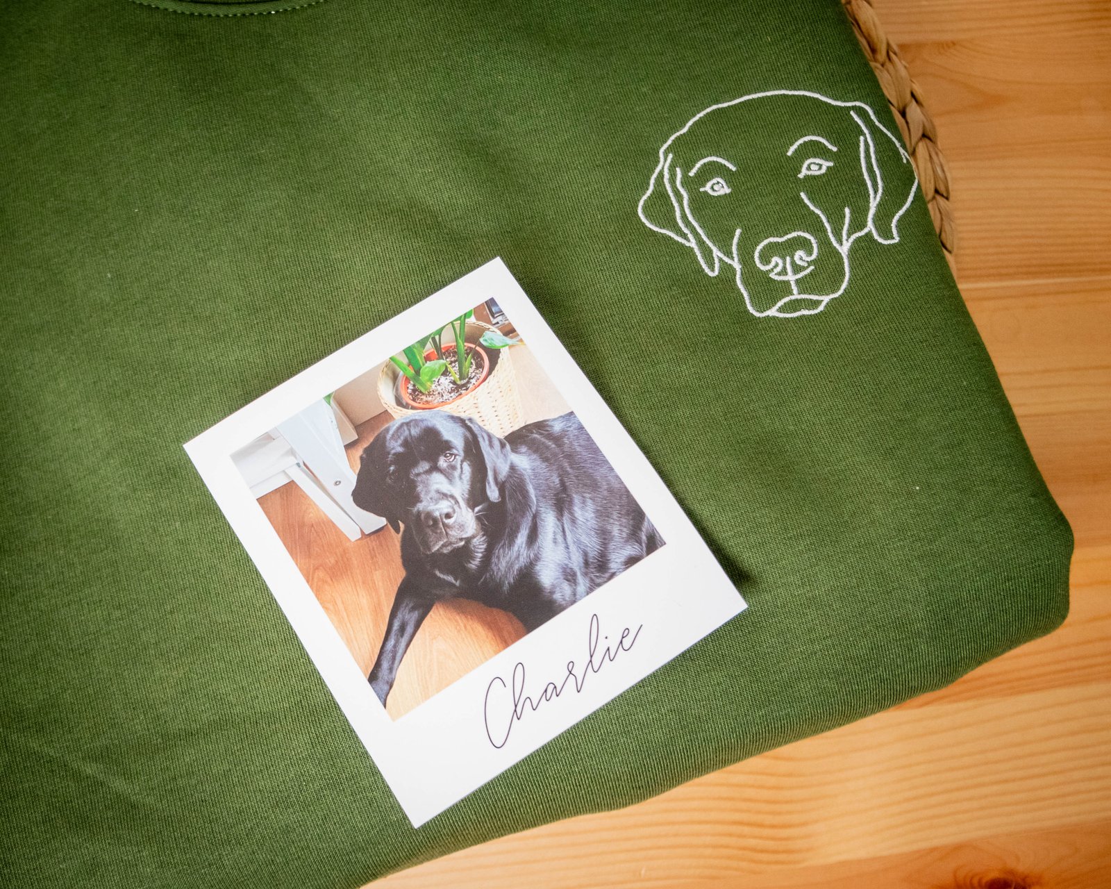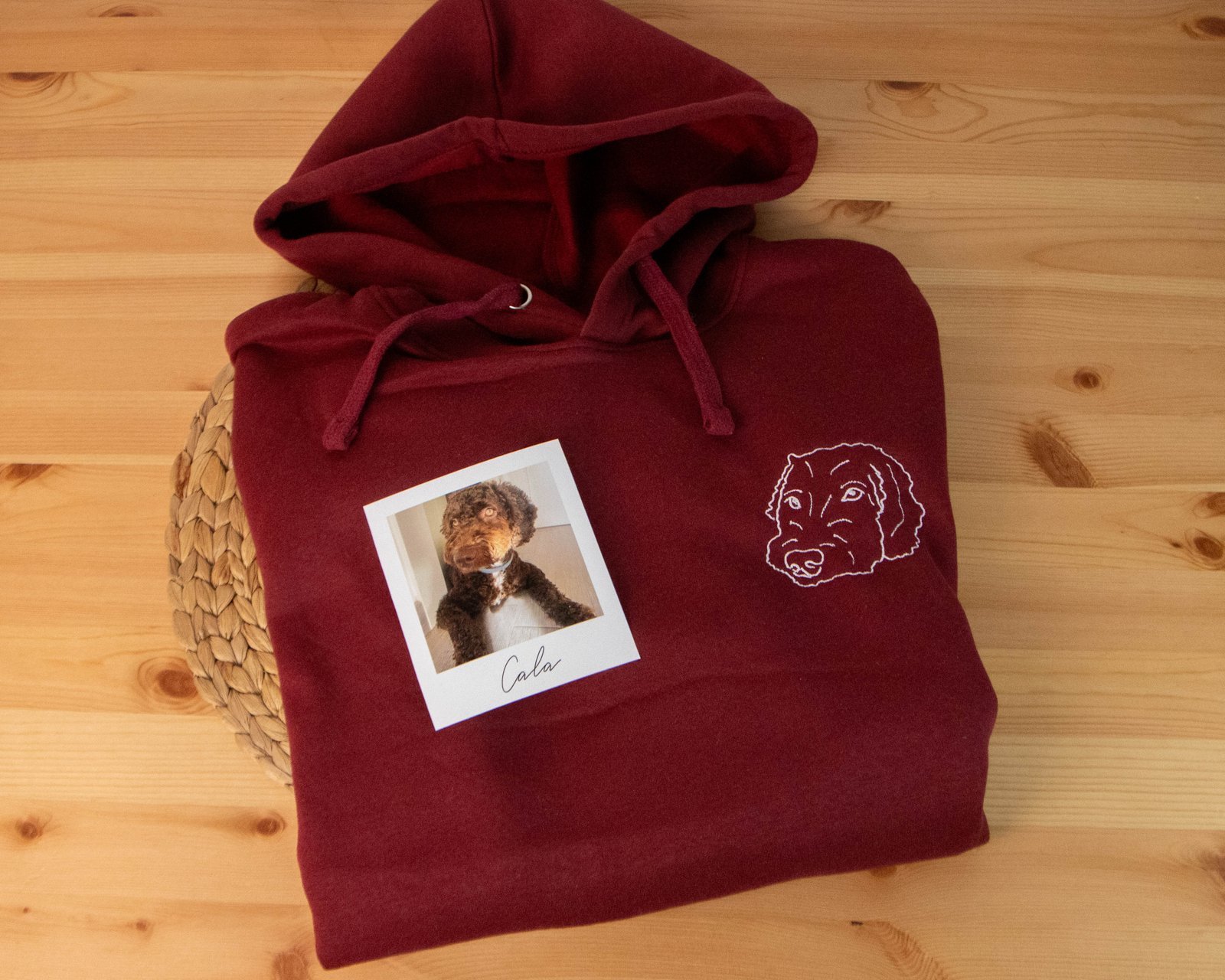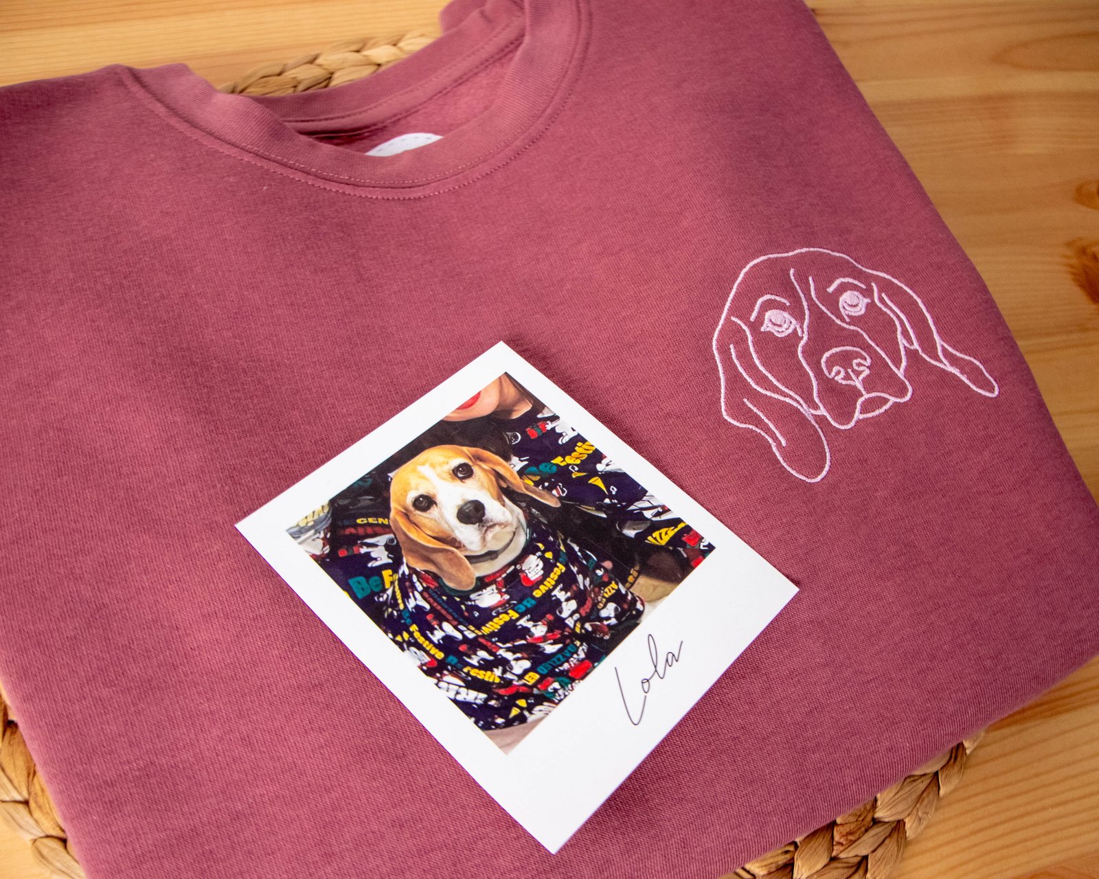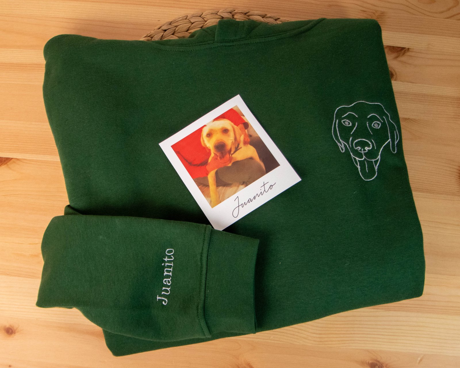 Sudadera personalizada con líneas de una foto y si eliges la opción también el nombre de tu mascota.
