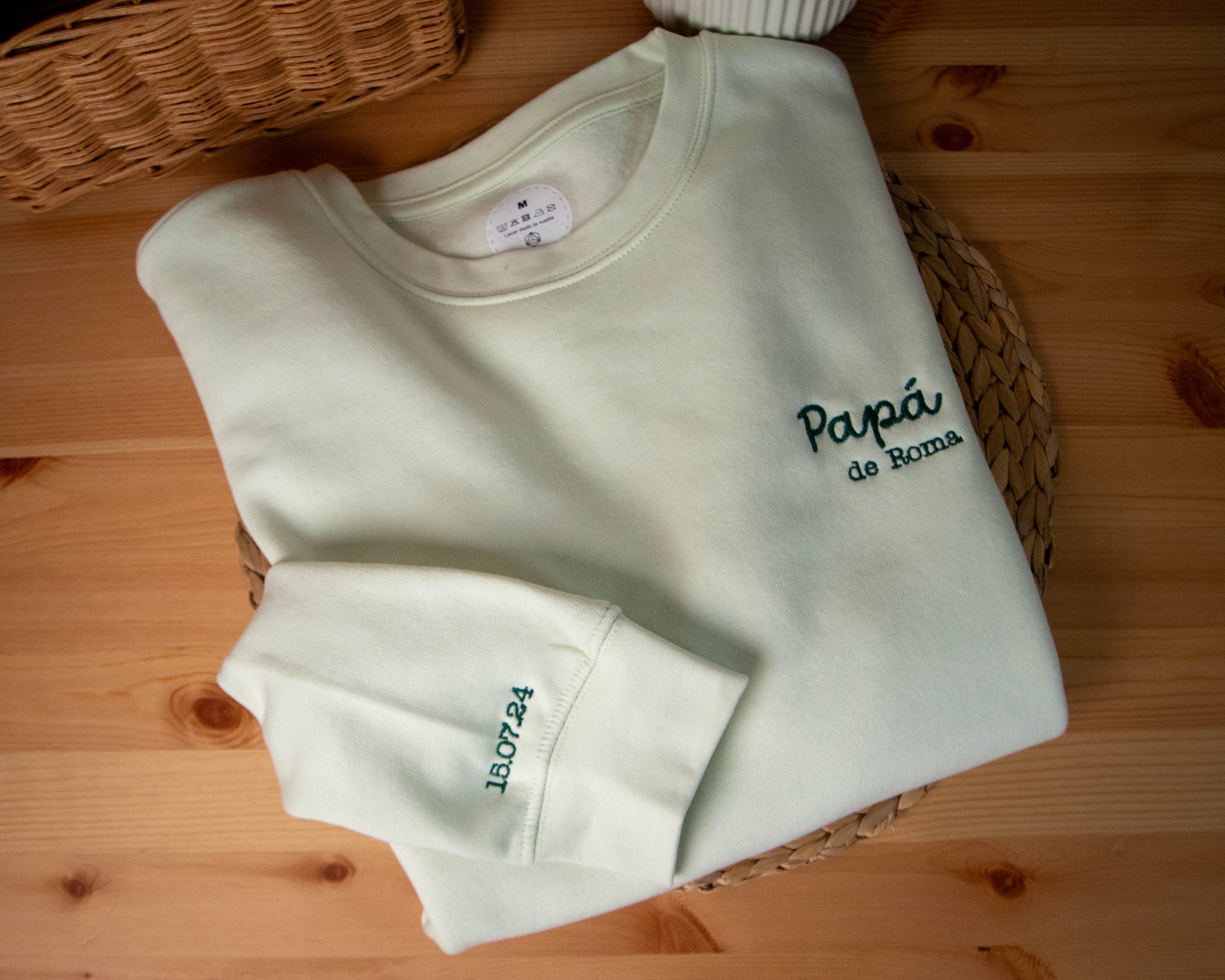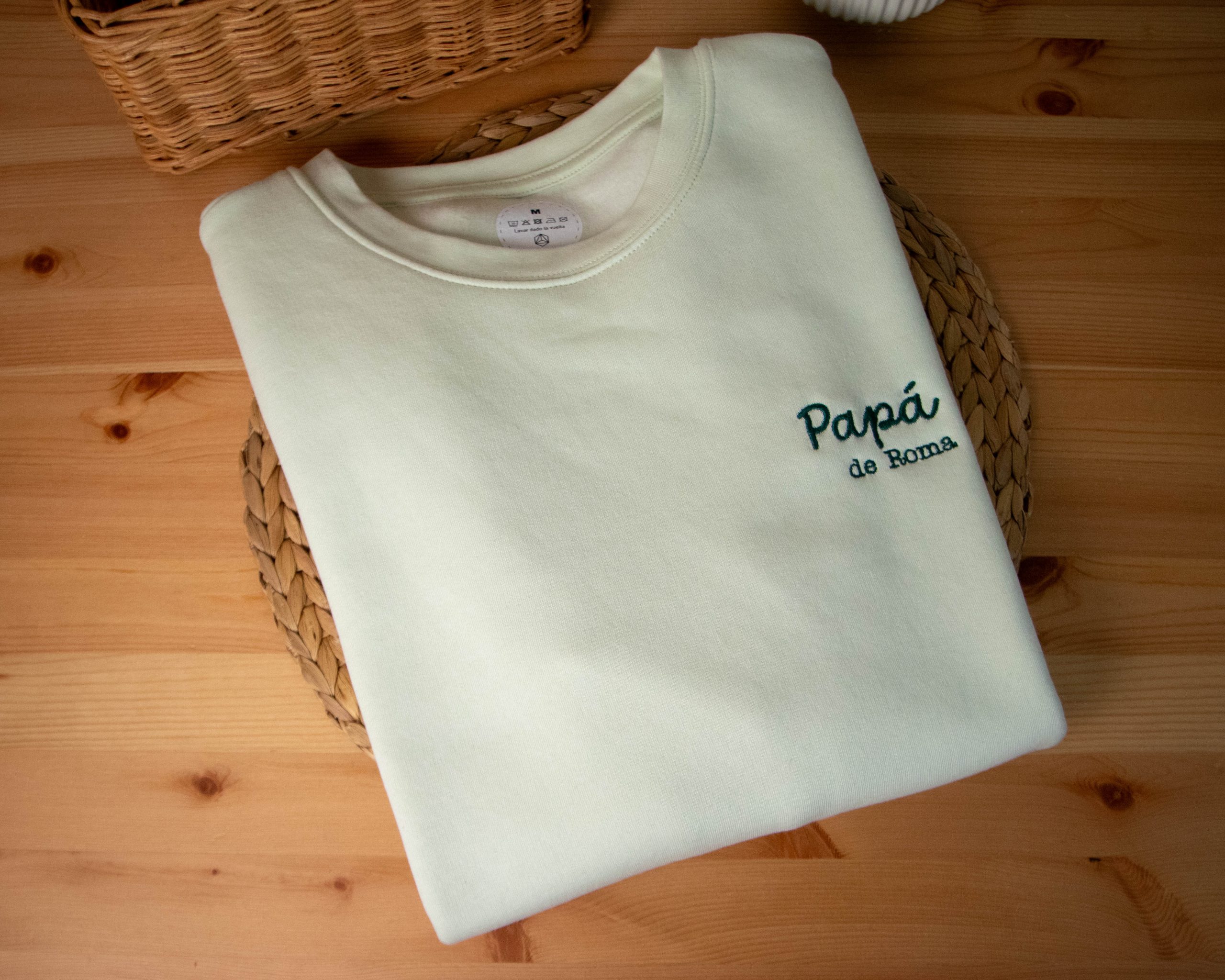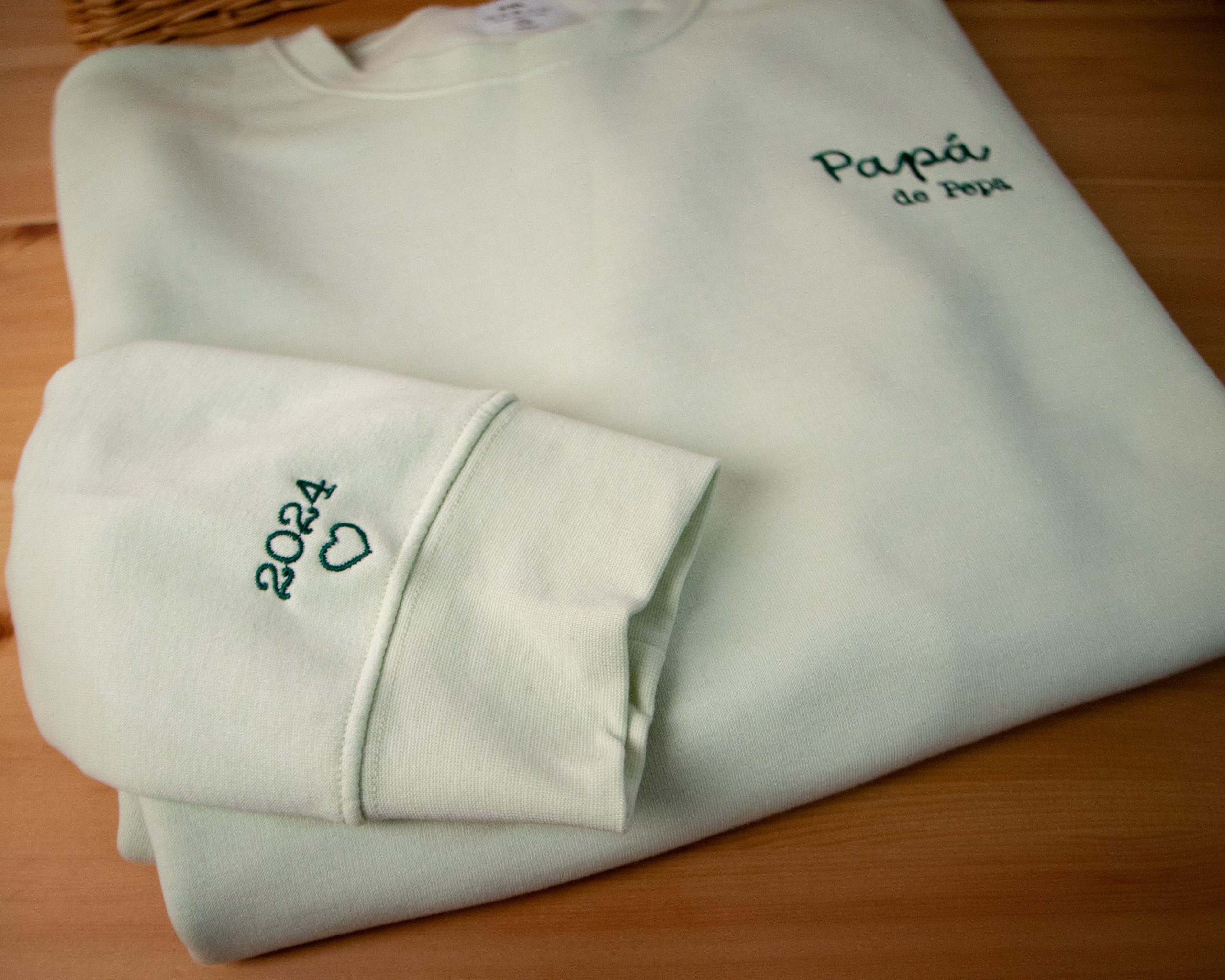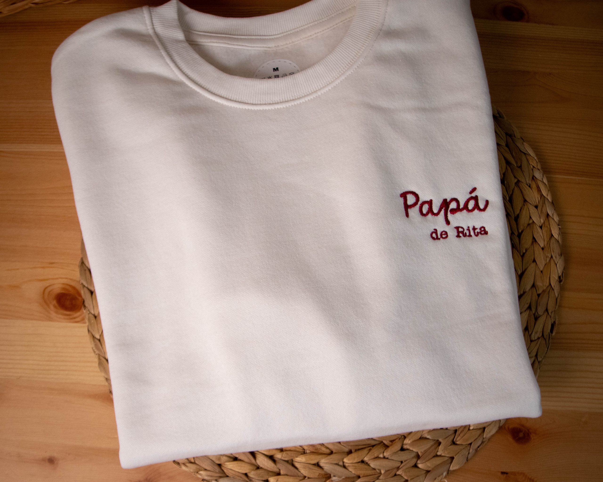Sorprende a papá con una sudadera única y personalizada que refleje el orgullo y amor por su familia. Esta prenda especial destaca por su diseño exclusivo, con un elegante bordado en el pecho en el que se inscribe la palabra "Papá de" y el nombre del peque o de los peques. Un detalle lleno de simbolismo que convierte esta sudadera en un regalo emotivo y lleno de significado.