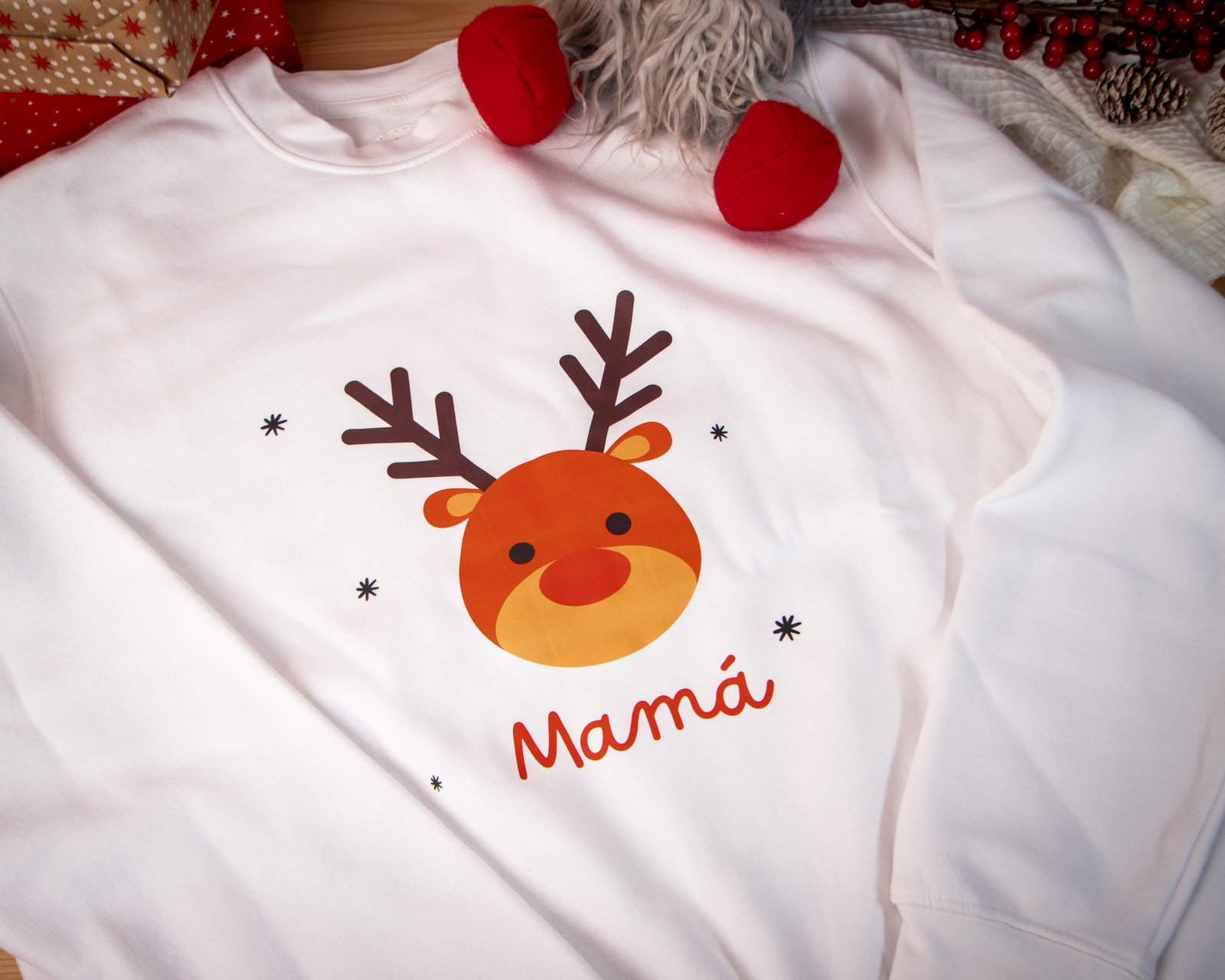 Esta sudadera personalizada es un detalle único o como regalo especial para otros miembros de la familia. Confeccionada en un material acogedor y resistente, es perfecta para usar tanto en reuniones navideñas como en días fríos de invierno. Su diseño con el reno navideño y el nombre personalizado la convierte en una prenda memorable que querrás llevar durante toda la temporada.