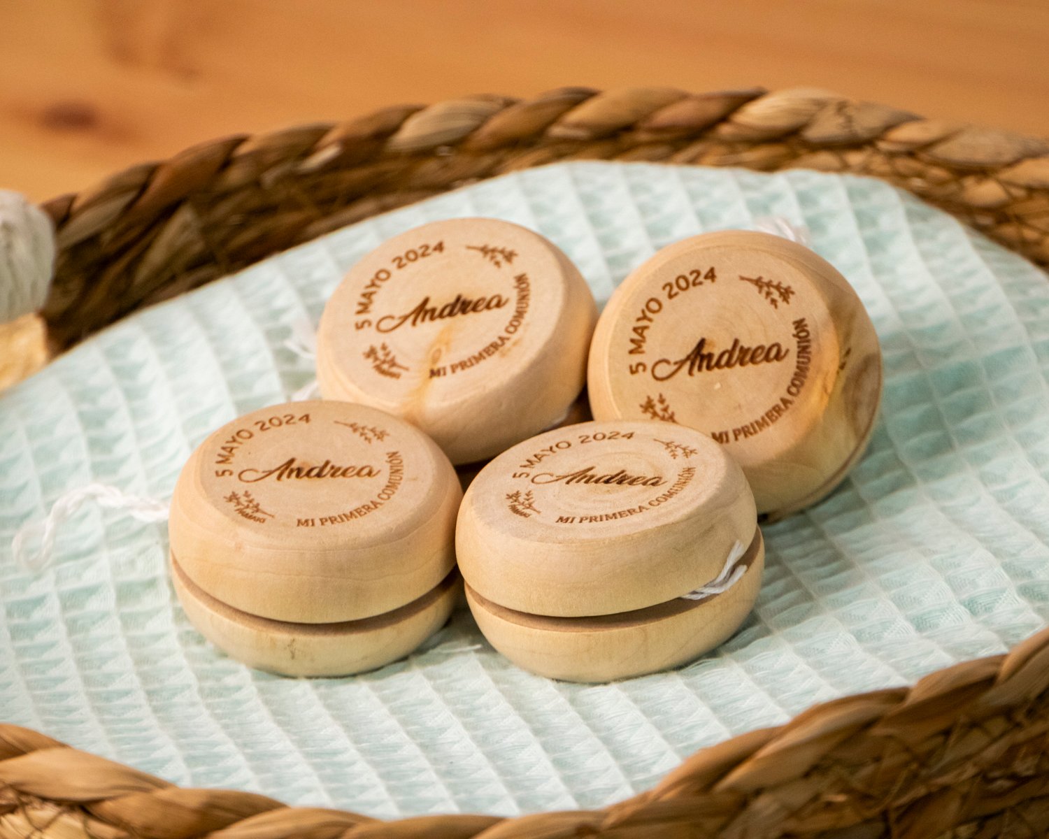 Sorprende a tus invitados más peques con estos yoyos grabados.