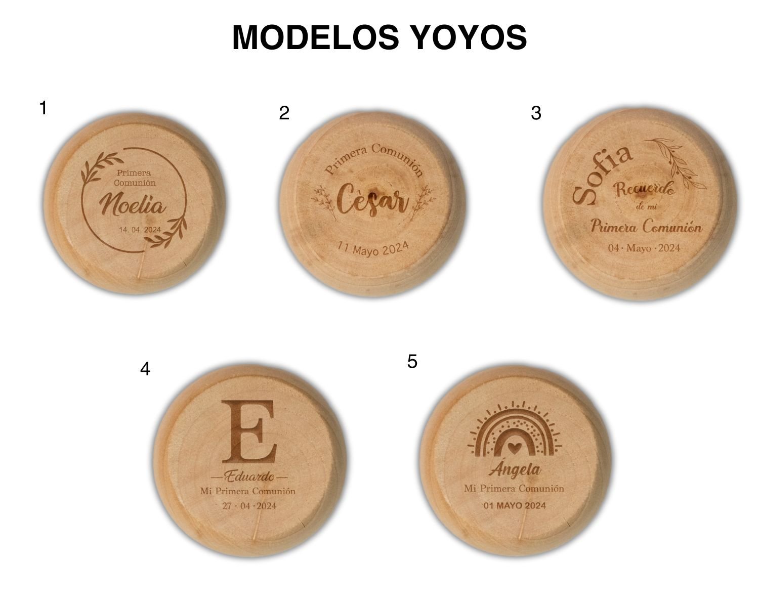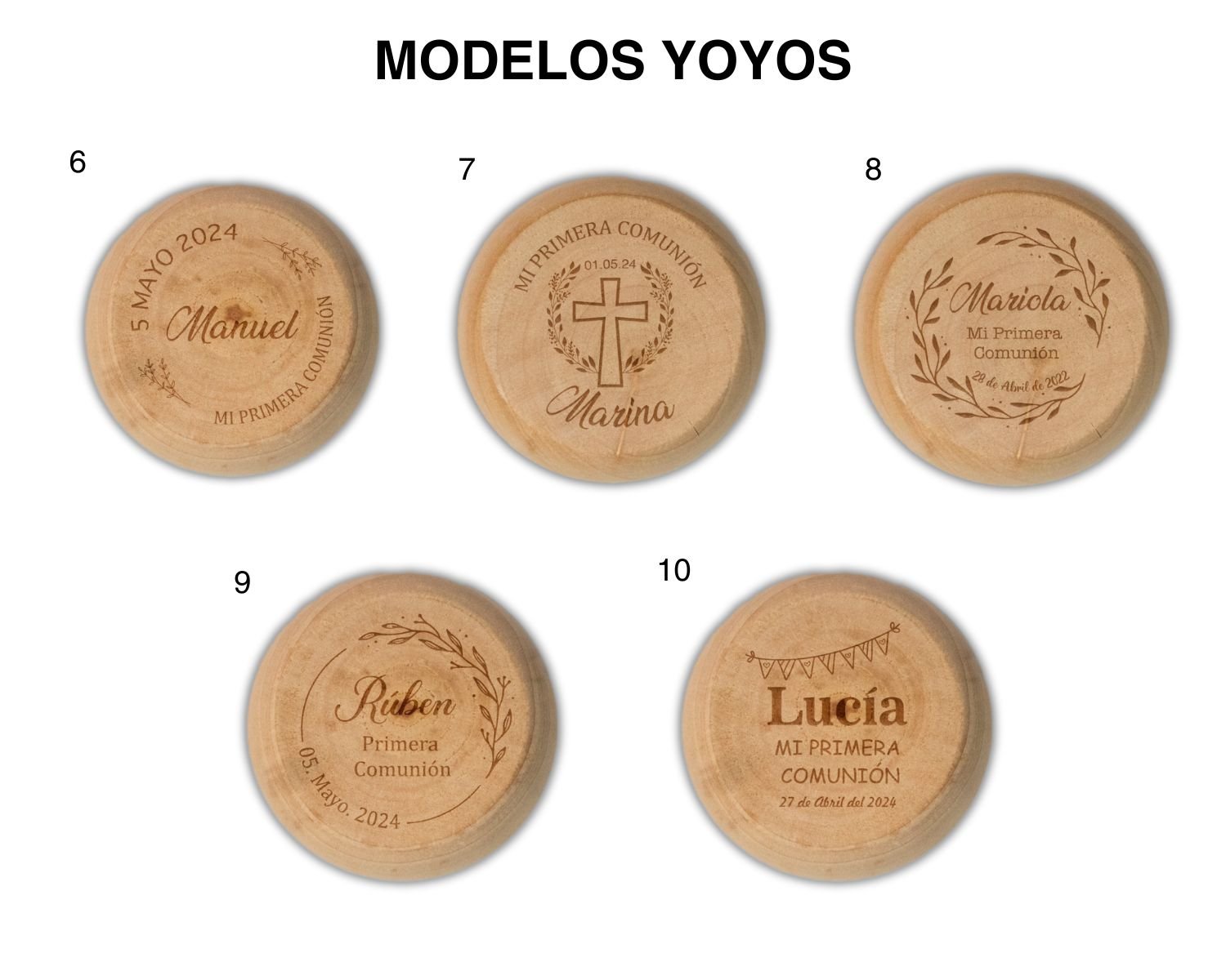 Yoyos circulares en madera grabados
